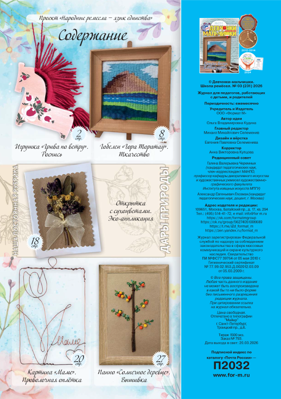 Встречайте мартовский выпуск журнала «Девчонки‑мальчишки. Школа ремёсел» (№ 3(231)2026) на тему «Краски весны в творчестве» и...